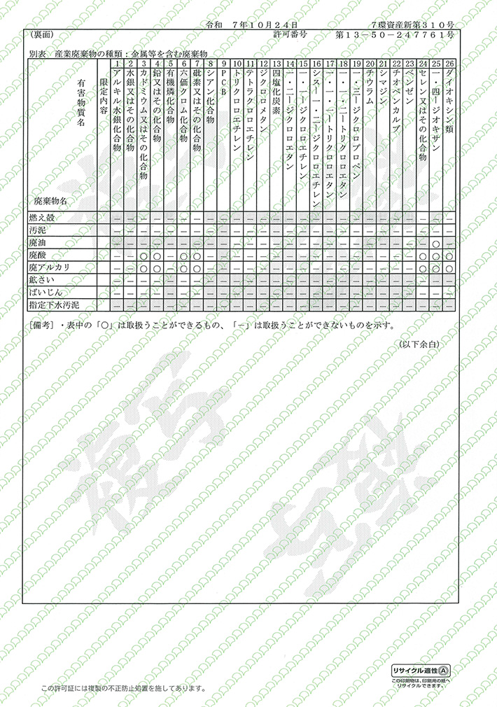 このたび、下記の通り東京都の特別管理産業廃棄物収集運搬業の許認可を取得いたしましたので、ご報告申し上げます。